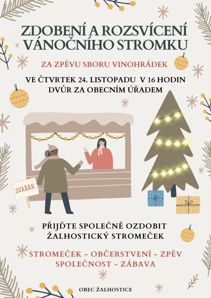Přijďte společně ozdobit žalhostický stromeček za zpěvu sboru Vinohrádek - ve čtvrtek 24. listopadu v 16 hodin na dvoře za obecním úřadem. Těšíme se na Vás! Občerstvení zajištěno.