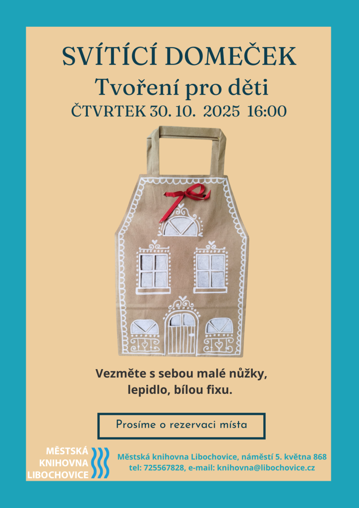 Z kapacitních důvodů prosíme o rezervaci místa e-mailem nebo telefonicky (knihovna@libochovice.cz; 725567828).